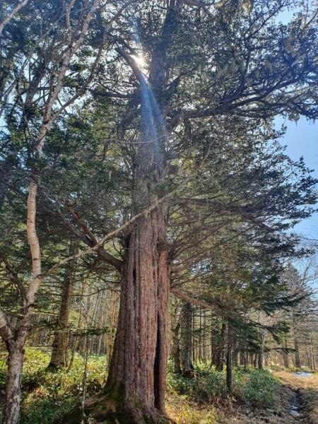 Растет Курильский мудрец на Кунашире. Высота дерева — 15 метров, диаметр ствола — более метра. Из всех деревьев Сибири и Дальнего Востока наш Мудрец — самый старый и редкий экземпляр.