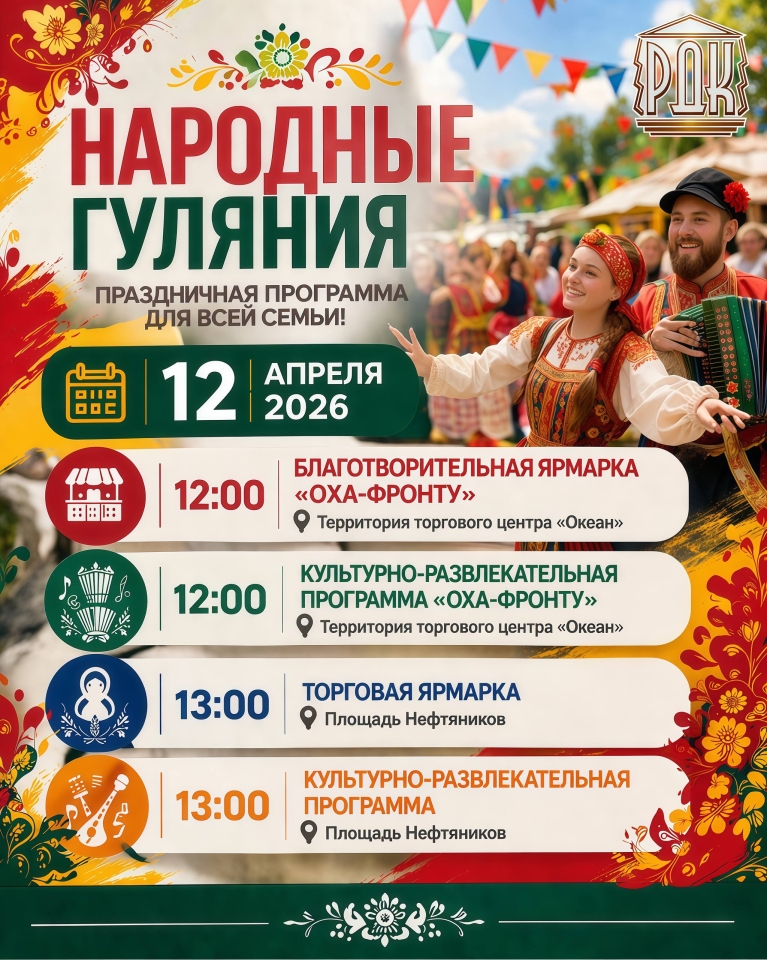 Жителей и гостей Охи приглашают принять участие в праздничной программе для всей семьи, которая состоится 12 апреля 2026 года. Мероприятия пройдут на нескольких городских площадках и объединят культурные, развлекательные и благотворительные активности.
