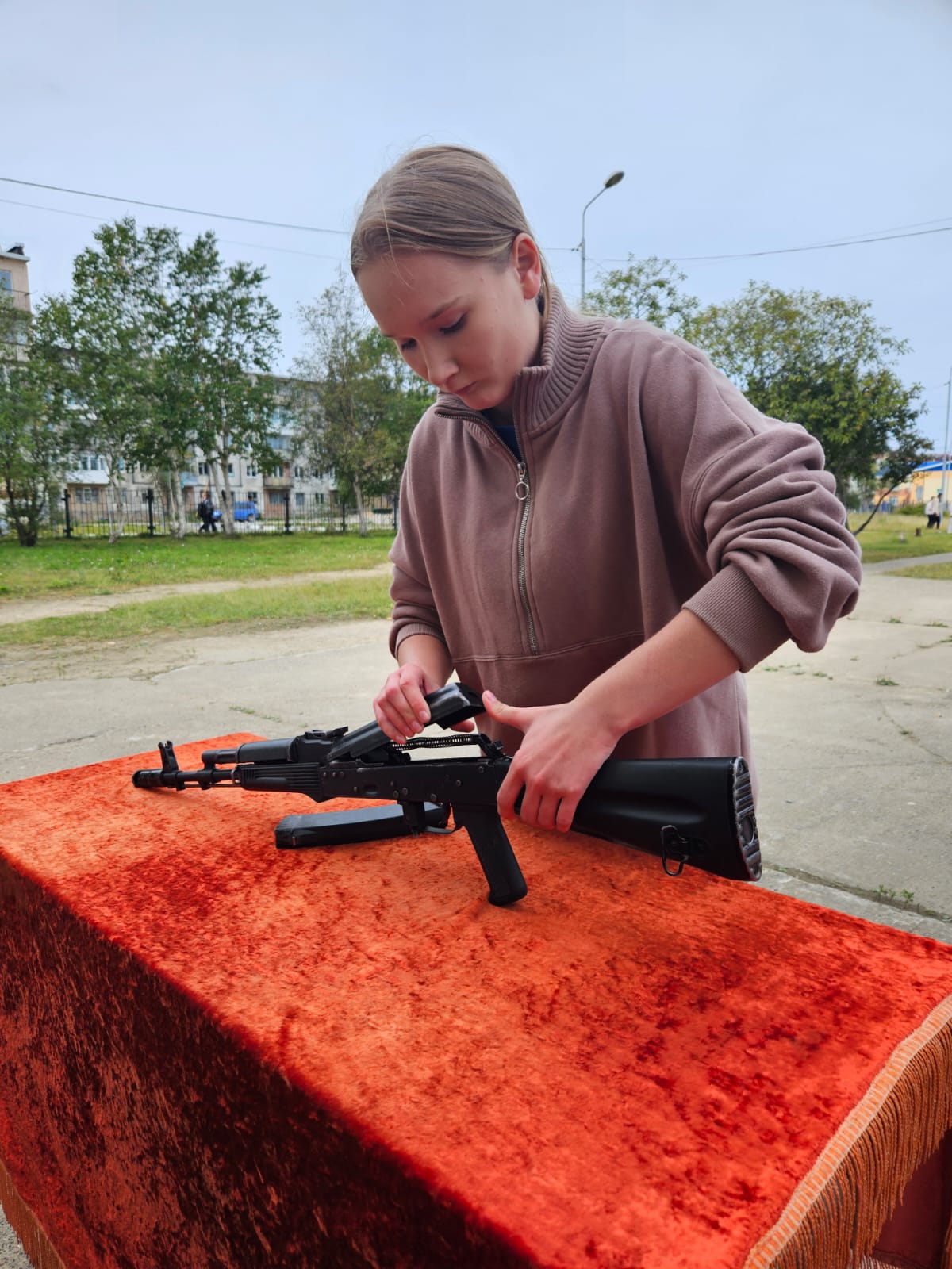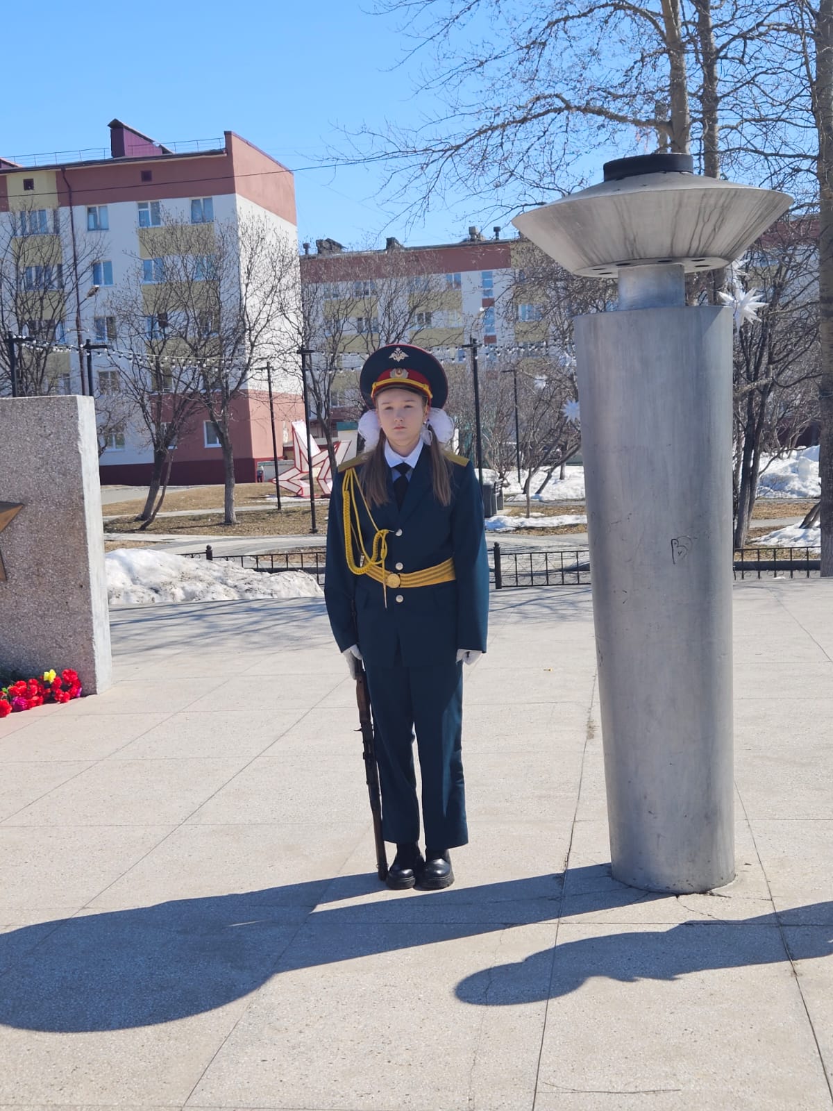 А в данный момент школьница участвует в конкурсе «Равнение на героев».