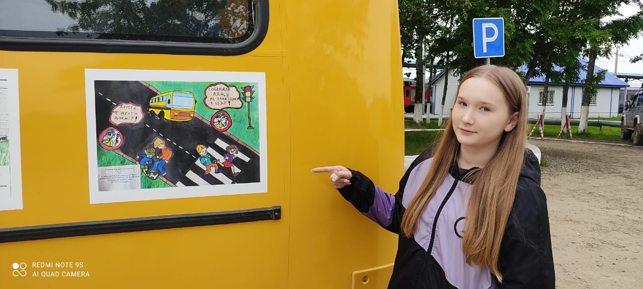 Девушка принимает участие в самых разных творческих состязаниях. Не так давно она стала победителем конкурса «Дети за безопасность дорожного движения», и теперь в Ногликском районе ходит автобус, оформленный ее рисунком.