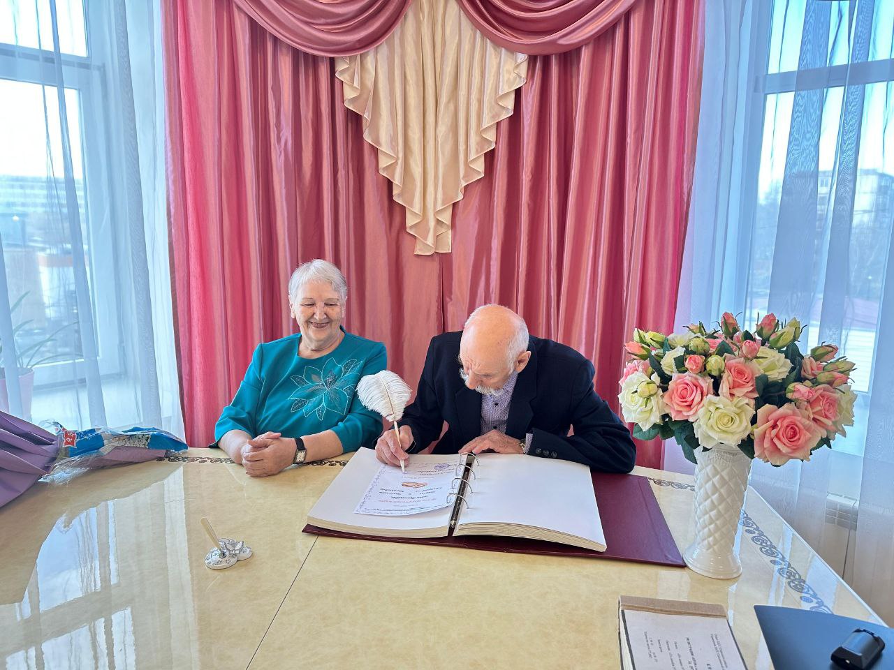 По традиции «золотые» виновники торжества оставили подписи в книге Почтенных юбиляров супружеской жизни. Супругам был вручен Поздравительный адрес от агентства ЗАГС Сахалинской области и памятное свидетельство о счастливом семейном союзе.