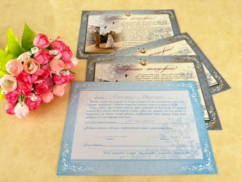 В торжественной обстановке в присутствии родных и друзей жених и невеста поставили свои подписи в записи акта о заключении брака и обменялись обручальными кольцами. А после церемонии новобрачные принимали поздравления и пожелания бесконечного семейного счастья, неугасающей любви и благополучия.