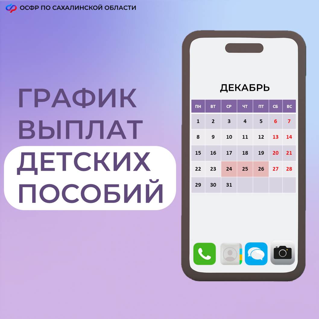 Пособия на детей Отделение СФР по Сахалинской области перечисляет в установленную дату – 3 числа текущего месяца за предыдущий. 3 января в 2026 году приходится на выходной день, поэтому пособия будут перечислены на банковские счета получателей заранее. Так, 26 декабря были зачислены следующие выплаты: