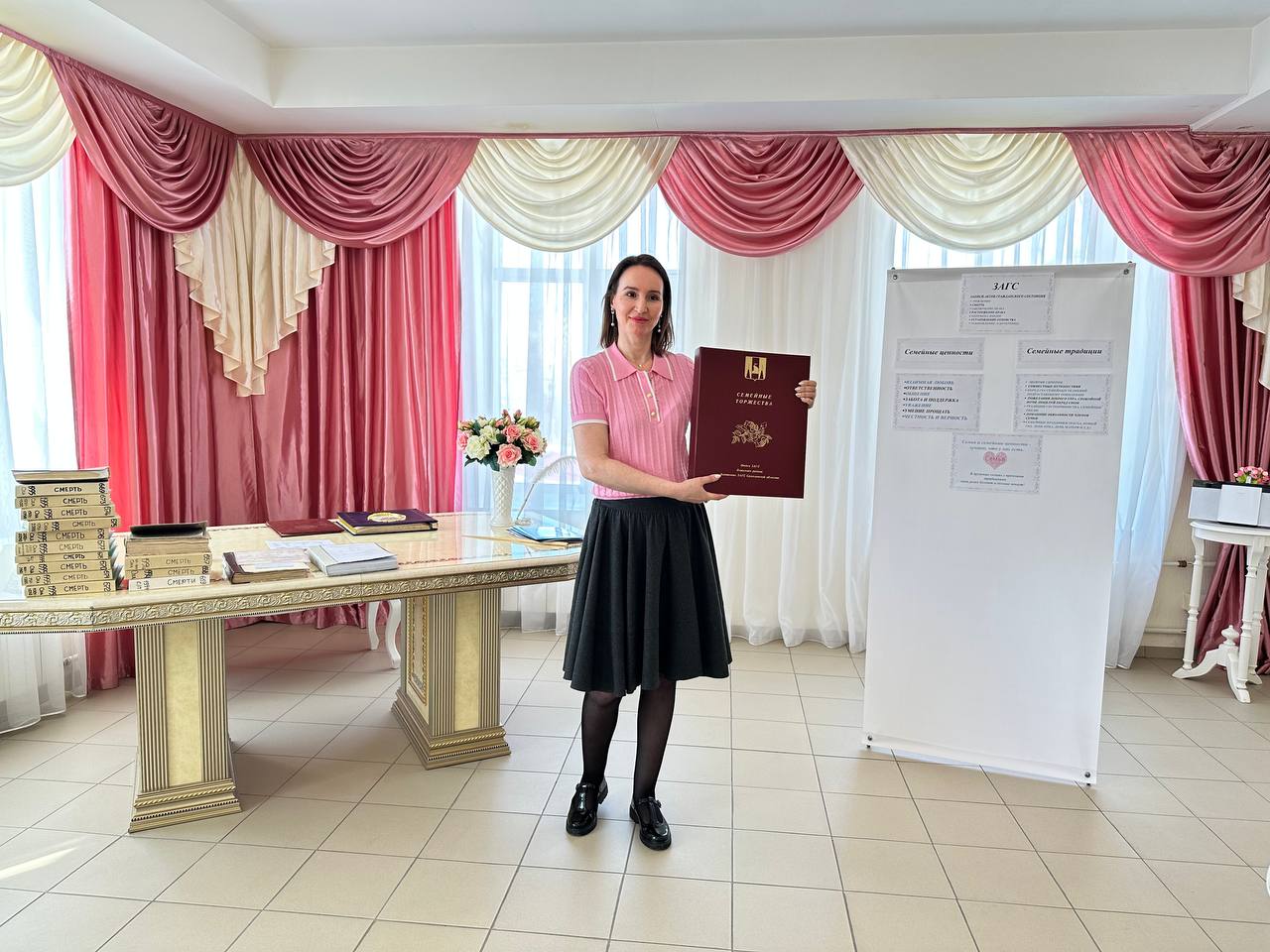 Познавательная экскурсия началась с посещения архива ЗАГС. Затем в зале торжественных бракосочетаний начальник отдела Петраш О. Г. рассказала школьникам о работе учреждения. Ребятам объяснили, что ЗАГС — это не только место проведения свадеб, но и важный орган, который фиксирует ключевые события в жизни человека: рождение, смерть, заключение и расторжение брака, установление отцовства, усыновление и перемену имени. Отдельное внимание уделили современным технологиям, которые делают услуги более доступными для граждан.