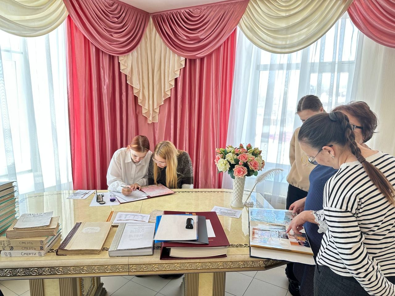 Для гостей прозвучал марш Мендельсона, после чего им рассказали об истории его создания. Особый интерес у школьников вызвали архивные материалы и статистика времён Великой Отечественной войны. Ребята с увлечением изучали актовые книги, сравнивая записи прошлого века с современными.