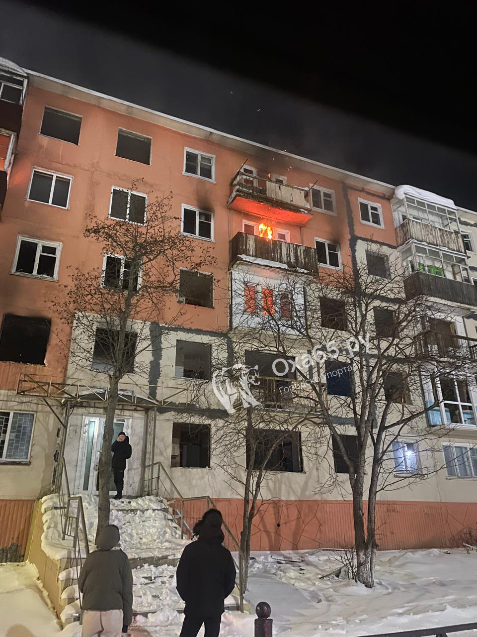 В Охе пожарные ликвидировали возгорание в расселённом многоквартирном доме на улице Дзержинского. Сообщение о пожаре поступило в 21:59.