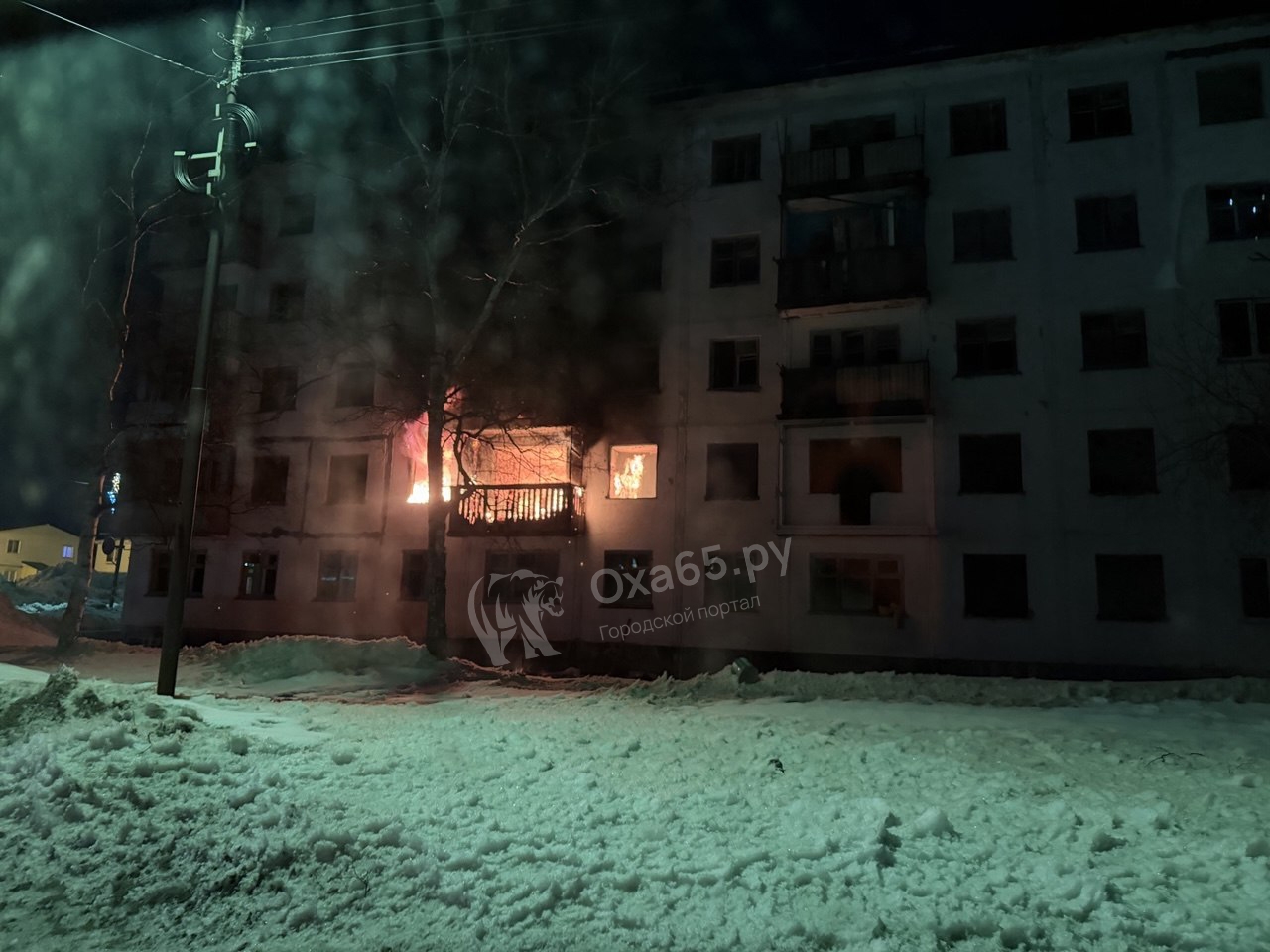 В Охе произошёл пожар в расселенном многоквартирном доме на улице Карла Маркса.