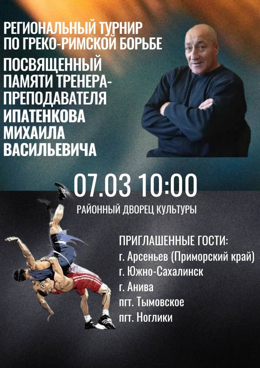 Завтра, 7 марта, в 12:00 в Районном Дворце культуры Охи состоится региональный турнир по греко-римской борьбе «Памяти тренера-преподавателя Михаила Васильевича Ипатенкова».