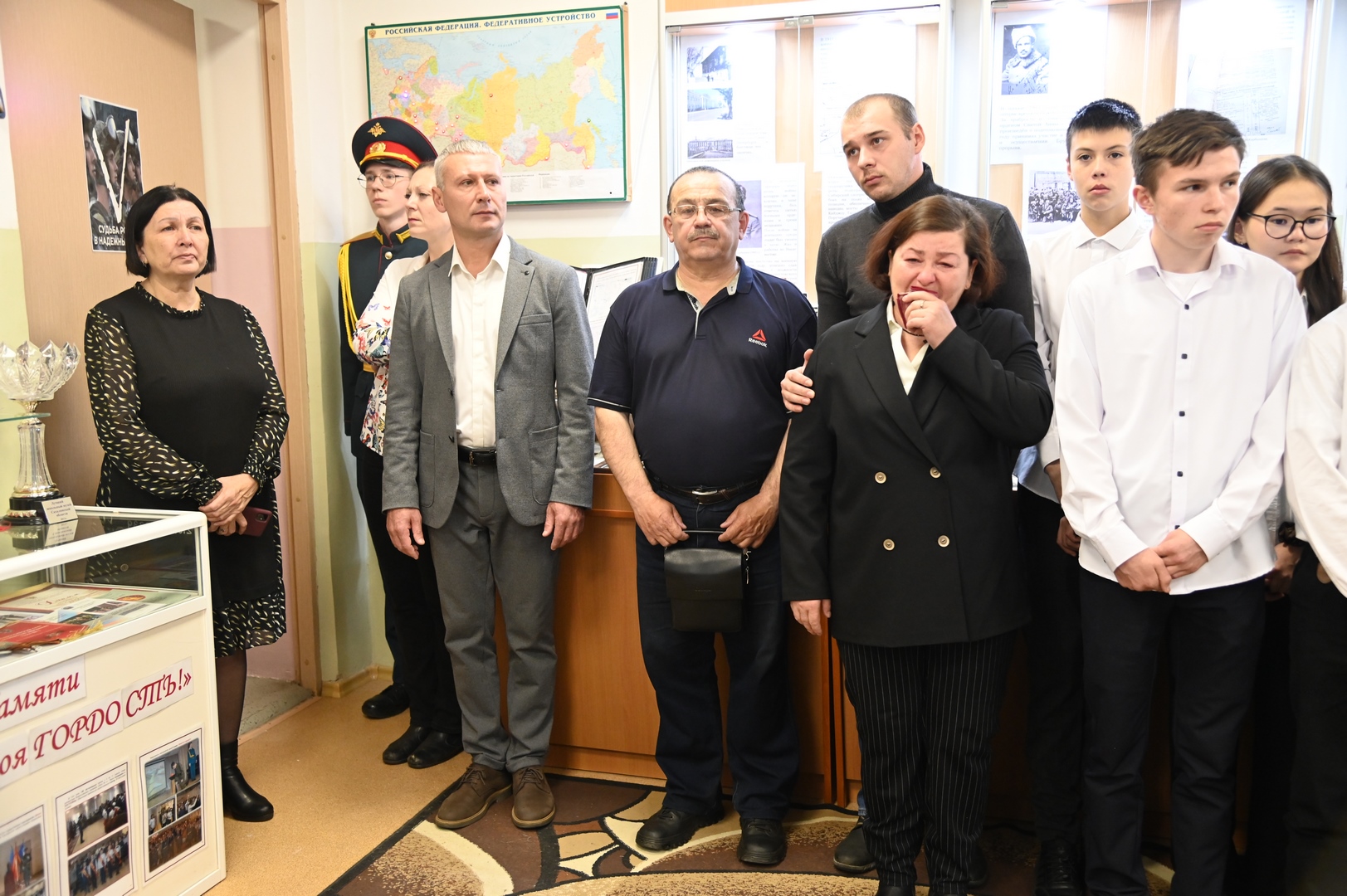 Слушая о подвигах воина, его мама, Наталья Олеговна, и брат Руслан Лещев не сдерживали слез. С большой благодарностью за сохранение памяти об их погибшем родном человеке они обратились к руководству школы и всем, кто участвовал в подготовке экспозиции, открытии Парты Героя, а также Аллеи Героев, на которой размещен портрет Игоря Опанасюк.