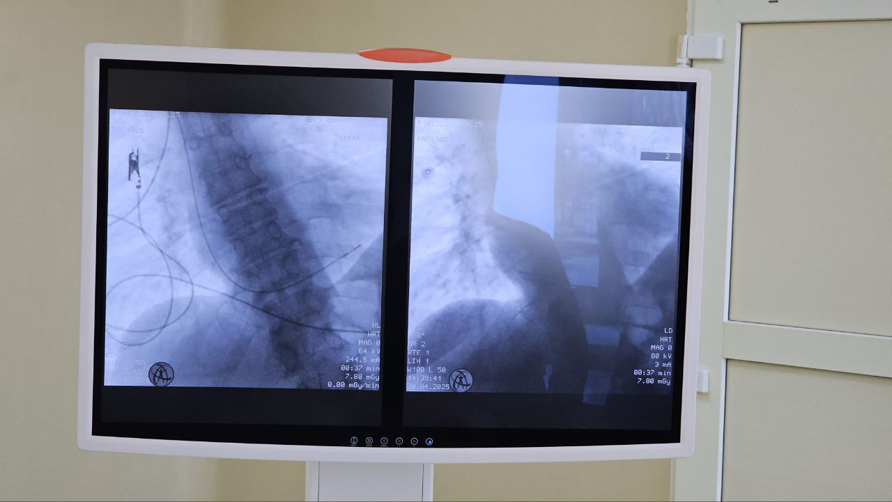 — Установка временного электрокардиостимулятора – экстренная инвазивная операция, которая проводится при жизнеугрожающих нарушениях сердечного ритма. Прибор помогает сердцу биться с нужной частотой, вне зависимости от того, способно ли оно само работать правильно. Благодаря С-дуге наша пациентка находилась на операционном столе минимальное количество времени. Женщина уже направлена в региональный сосудистый центр для оперативного лечения ее сердечной патологии. С электрокардиостимулятором до областного центра она добралась в безопасном для жизни состоянии, — отмечает Денис Кенджиев.